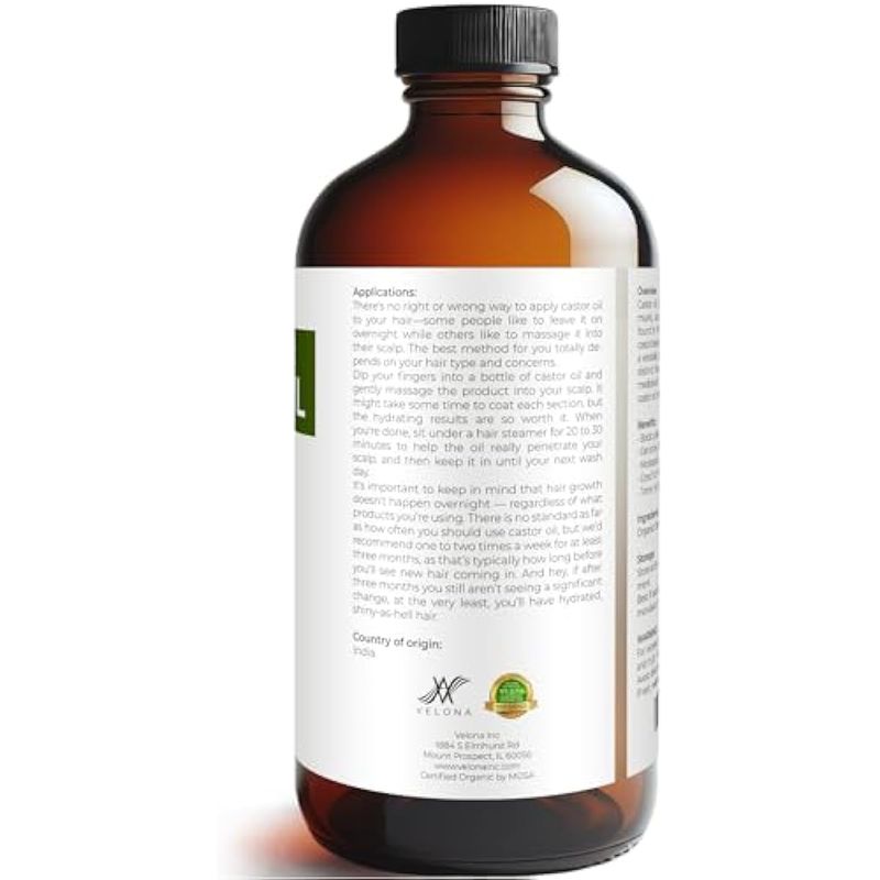 VELONA ACEITE DE RICINO ORGáNICO CERTIFICADO POR LA USDA, 16 ONZAS LíQUIDAS EN BOTELLA DE VIDRIO, PARA EL CRECIMIENTO DEL CABELLO, PESTAñAS Y CEJAS, PRENSADO EN FRíO, ACEITE NATURAL, GRADO USP, SIN