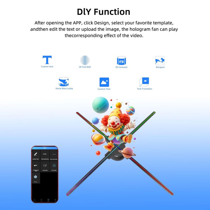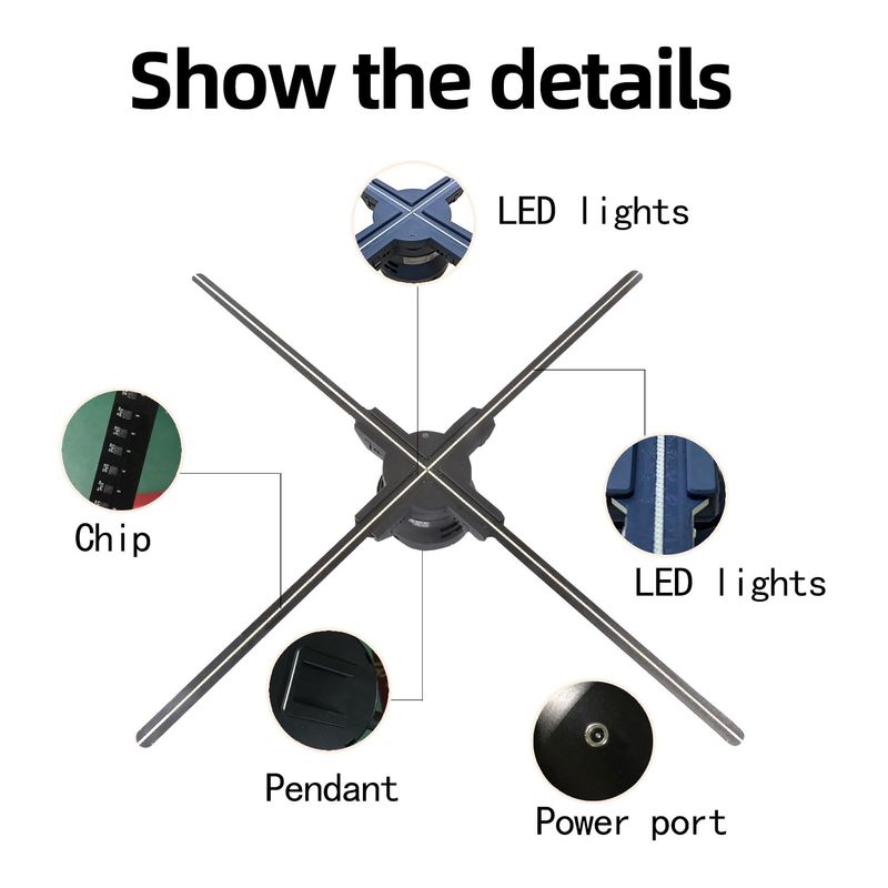 Ventilador 3D de hologram de 24.9 pulgadas, proyector hologram sin tornillos, luces LED HD con
