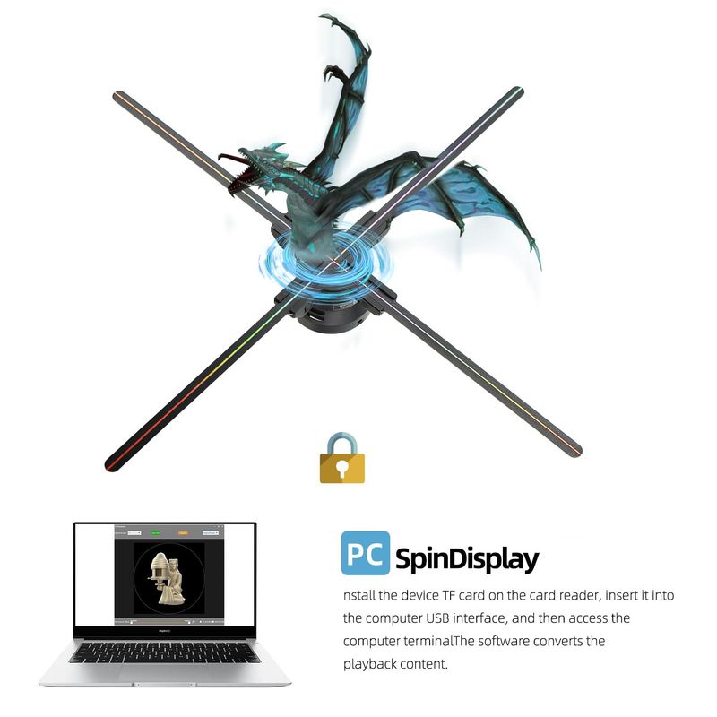 Visuales de alta calidad con impresionante brillo LED. Diseñado con 720 luces LED de alto brillo, el ventilador de holograma 3D Missyou garantiza que tus imágenes sean claras, vívidas y llamativas. Ya sea que estés mostrando un nuevo producto, un especial de vacaciones o animaciones personalizadas, las luces LED de alta calidad producen colores ricos y vibrantes e imágenes detalladas que hacen que tu contenido destaque. Este brillo mejorado garantiza que su pantalla sea visible incluso en entornos altamente iluminados, asegurando el máximo impacto dondequiera que se coloque