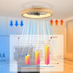 VENTILADOR DE TECHO DE 20 PULGADAS CON LUZ, TEMPORIZADOR LED REGULABLE CON CONTROL REMOTO, 5 ASPAS REVERSIBLES INVISIBLES, VENTILADOR DE PERFIL BAJO DE MONTAJE SEMIEMPOTRADO, MARCO DE