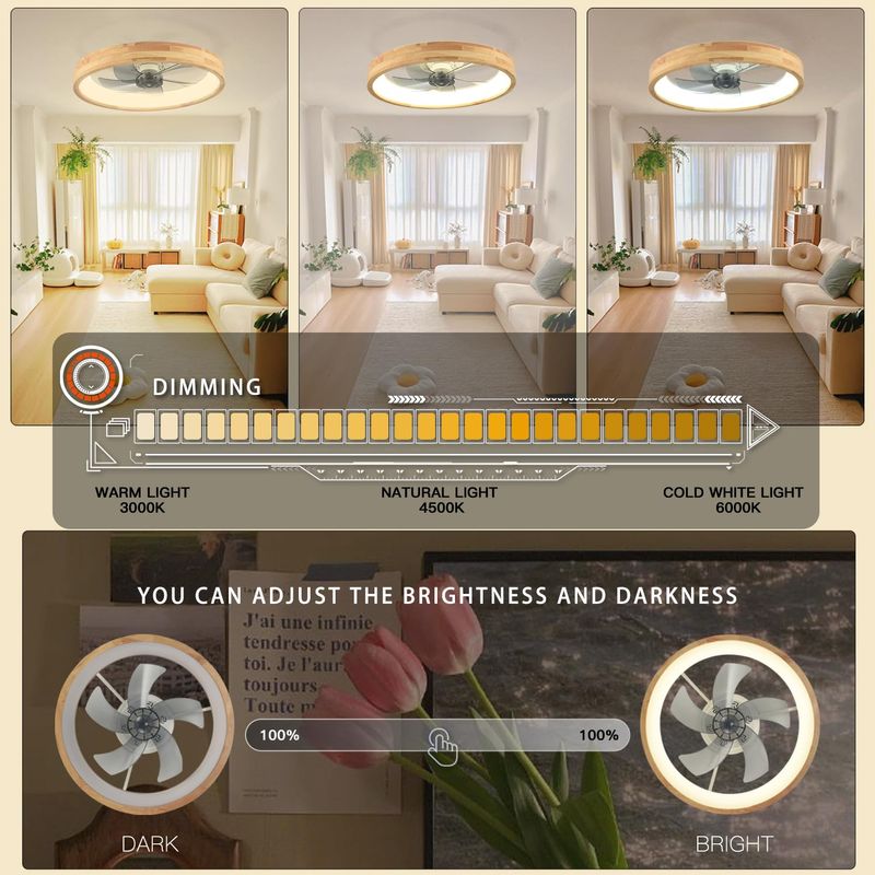 Ventiladores de techo con luces: el moderno ventilador de techo cerrado con luz está diseñado con bordes de madera, lo que le permite disfrutar de la luz brillante y decorar la habitación. Al mismo tiempo, nuestro exclusivo ventilador de techo pequeño de perfil bajo con diseño ligero puede hacer que el aire de tu habitación circule bien y mantener el aire fresco.