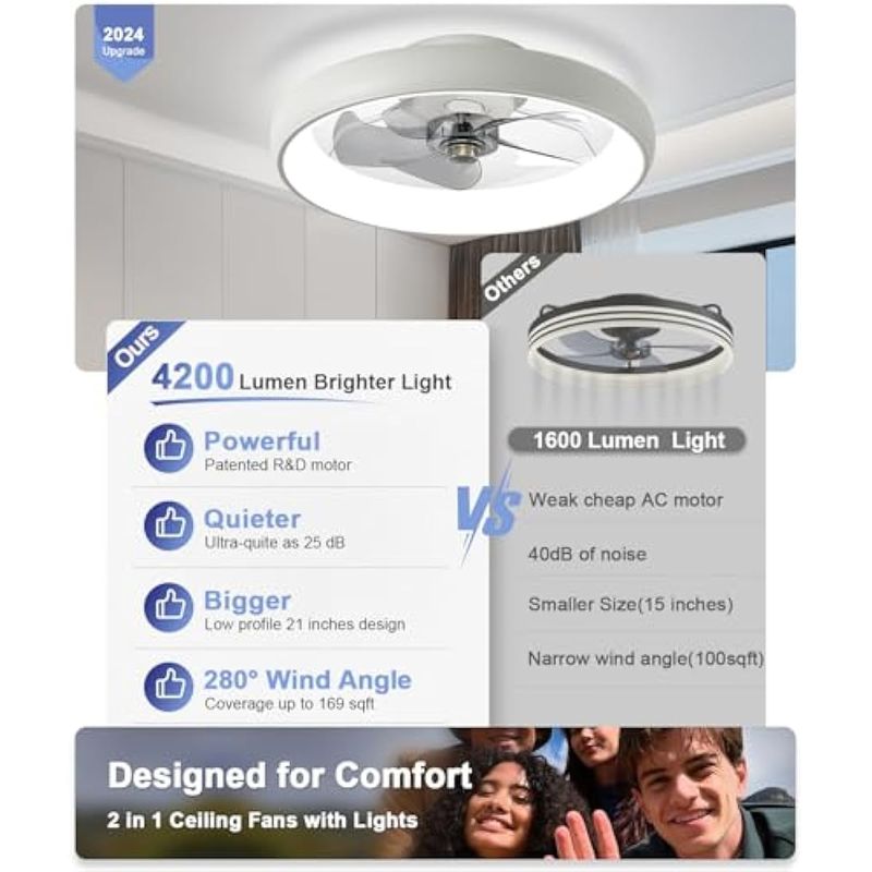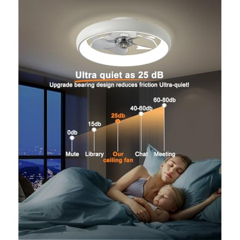 6 velocidades de ventilador y ultra silencioso: el ventilador de techo de perfil bajo ofrece un ventilador de 6 velocidades y 2 modos de flujo de aire para necesidades de comodidad personalizables. A diferencia del ventilador de techo tradicional Fandaliers ruidoso, nuestro motor de cobre puro recientemente actualizado funciona sin problemas con un fuerte flujo de aire y un ruido ultra bajo, diseñado para crear un ambiente cómodo y mejorar la calidad del sueño. Además, nuestro moderno ventilador de techo de alta calidad es energéticamente eficiente y tiene una vida útil más larga, lo que lo convierte en la solución óptima para el ventilador de techo empotrado.