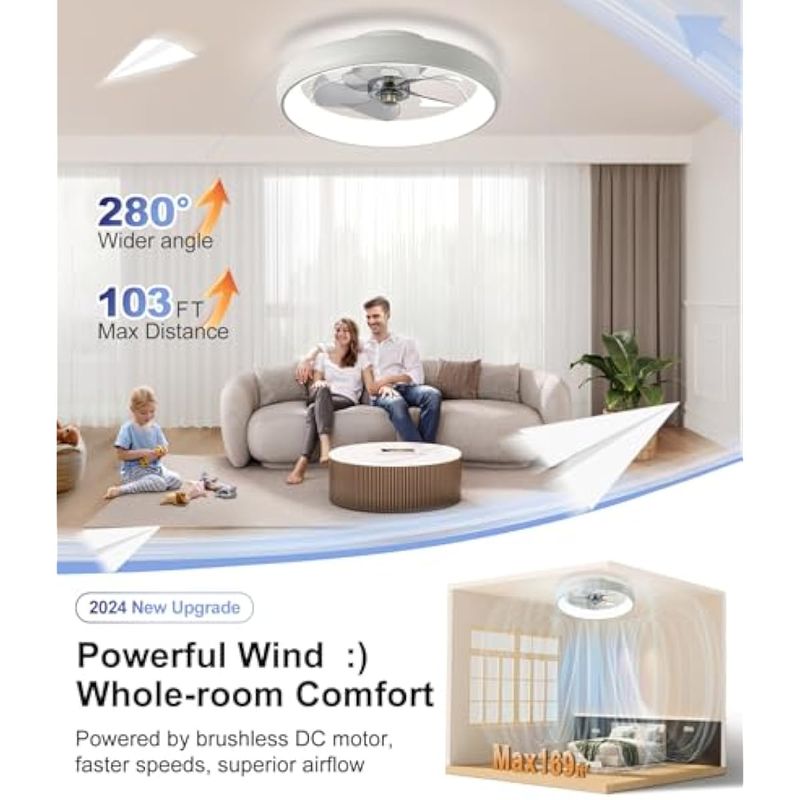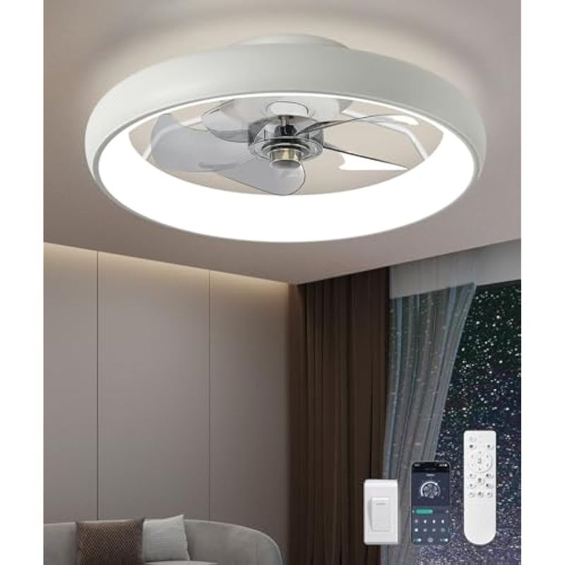 VENTILADORES DE TECHO CON LUCES Y CONTROL REMOTO, VENTILADOR DE TECHO MODERNO DE PERFIL ULTRA BAJO DE 20 PULGADAS, VENTILADOR DE TECHO LED INTELIGENTE SIN ASPAS DE 6 VELOCIDADES CON LUCES PARA