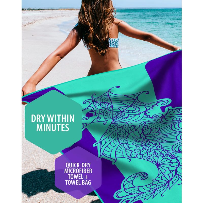 VENTURE 4TH Toalla de playa de microfibra: secado rápido, compacta, sin arena, absorbente, a prueba