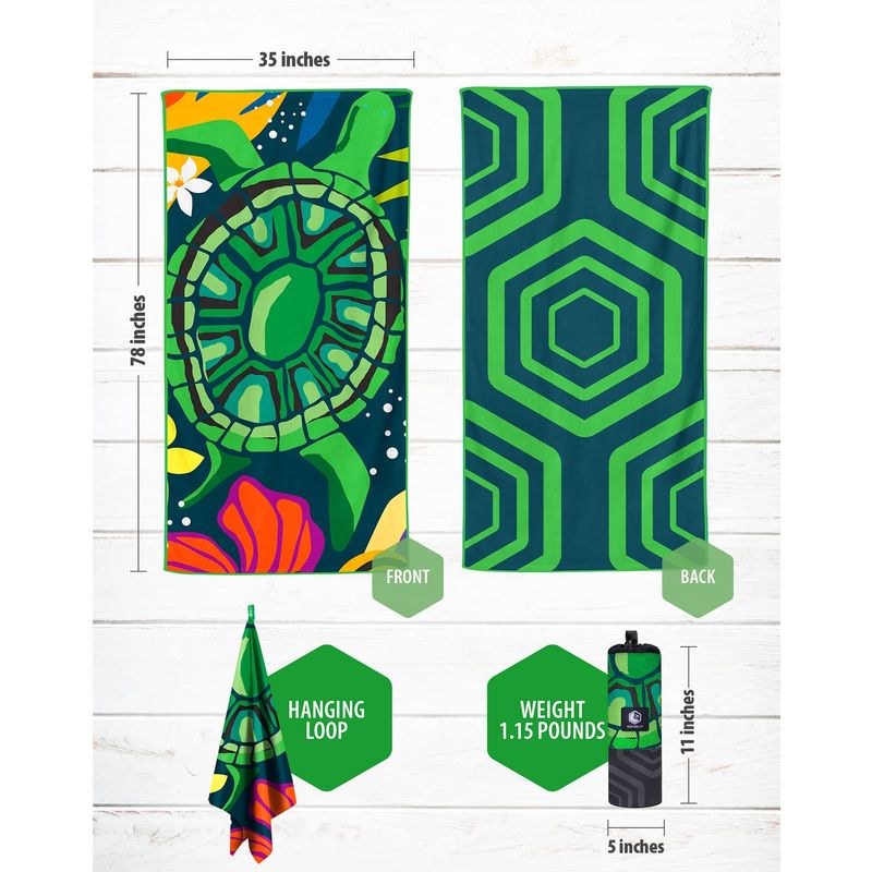 VENTURE 4TH Toalla de playa de microfibra: secado rápido, compacta, sin arena, absorbente, a prueba