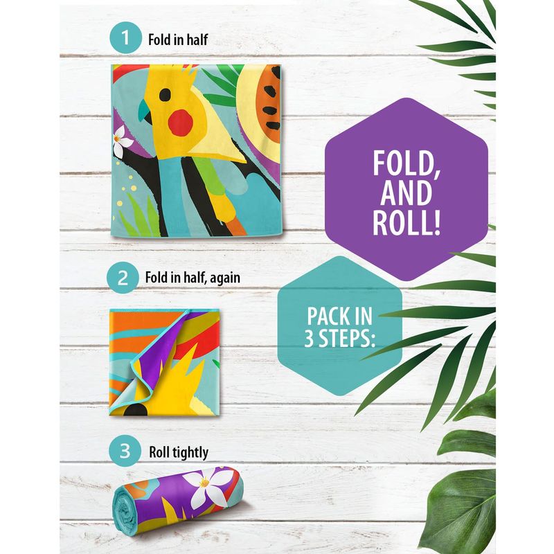 ? Grande pero fácil de plegar: nuestra toalla puede ser grande, pero con una técnica de plegado adecuada y bolsa de viaje que viene con ella, tendrás mucho espacio en tu maleta, mochila o bolsa de playa. Simplemente dóblalo por la mitad dos veces y enróllalo para adaptarse a la bolsa.