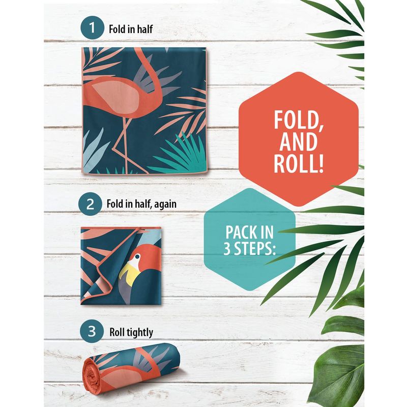 ? Grande pero fácil de plegar: nuestra toalla puede ser grande, pero con una técnica de plegado adecuada y bolsa de viaje que viene con ella, tendrás mucho espacio en tu maleta, mochila o bolsa de playa. Simplemente dóblalo por la mitad dos veces y enróllalo para adaptarse a la bolsa.