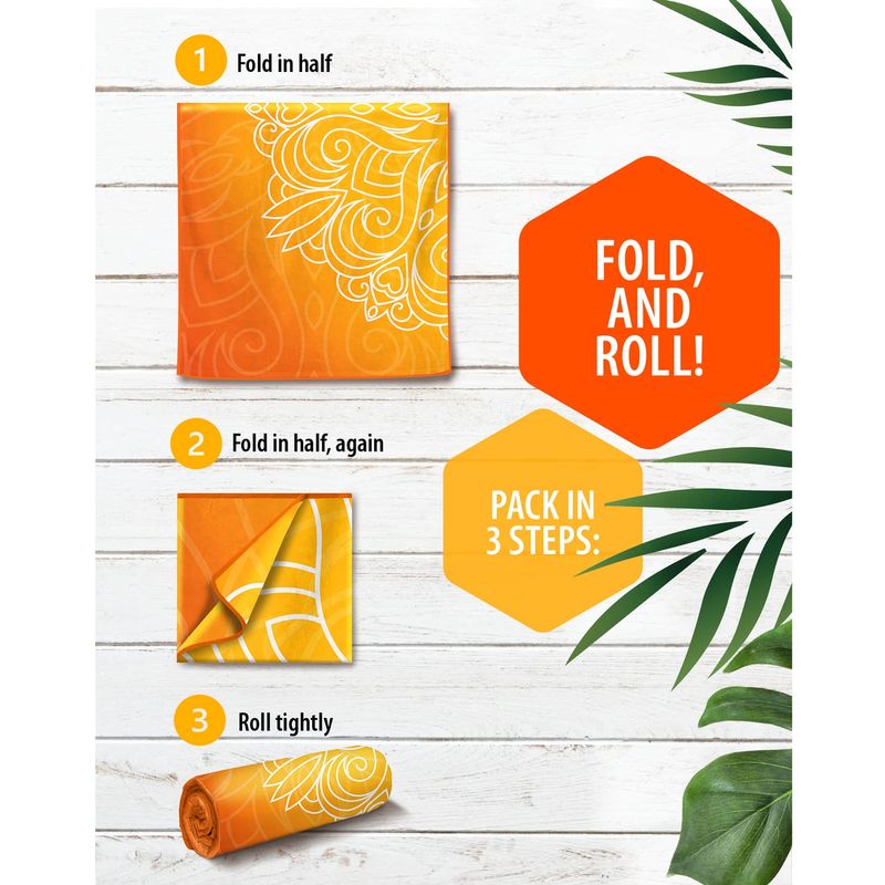 ? Grande pero fácil de plegar: nuestra toalla puede ser grande, pero con una técnica de plegado adecuada y bolsa de viaje que viene con ella, tendrás mucho espacio en tu maleta, mochila o bolsa de playa. Simplemente dóblalo por la mitad dos veces y enróllalo para adaptarse a la bolsa.