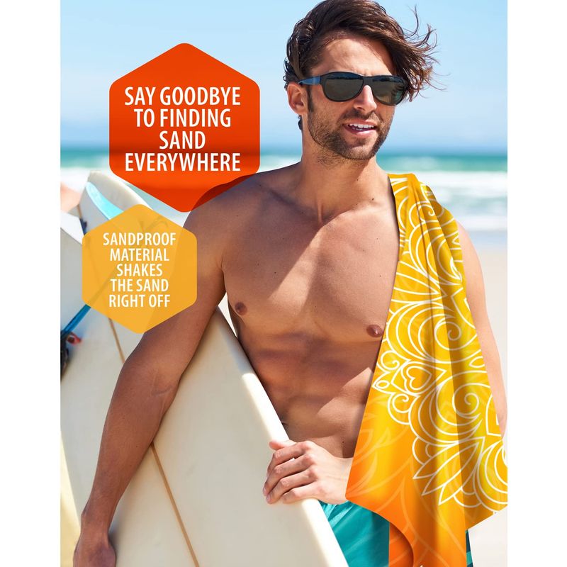 ? Sin arena y de secado rápido: gracias a la capacidad de secado rápido de la microfibra, la arena no se pega y tampoco la suciedad. No más encontrar arena durante días después de salir de la playa: con toallas de microfibra, dejas arena donde pertenece.