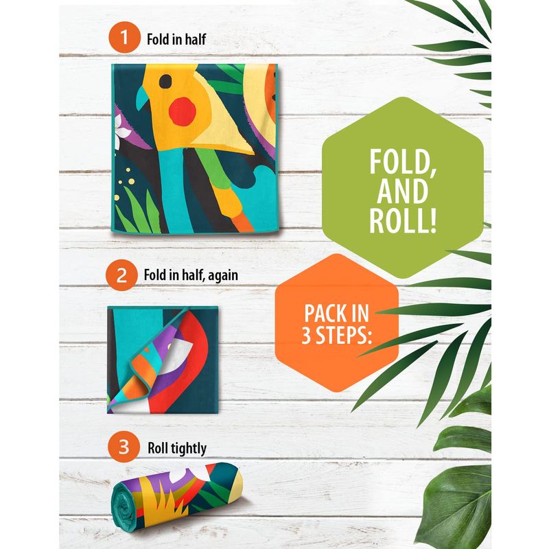 ? Grande pero fácil de plegar: nuestra toalla puede ser grande, pero con una técnica de plegado adecuada y bolsa de viaje que viene con ella, tendrás mucho espacio en tu maleta, mochila o bolsa de playa. Simplemente dóblalo por la mitad dos veces y enróllalo para adaptarse a la bolsa.