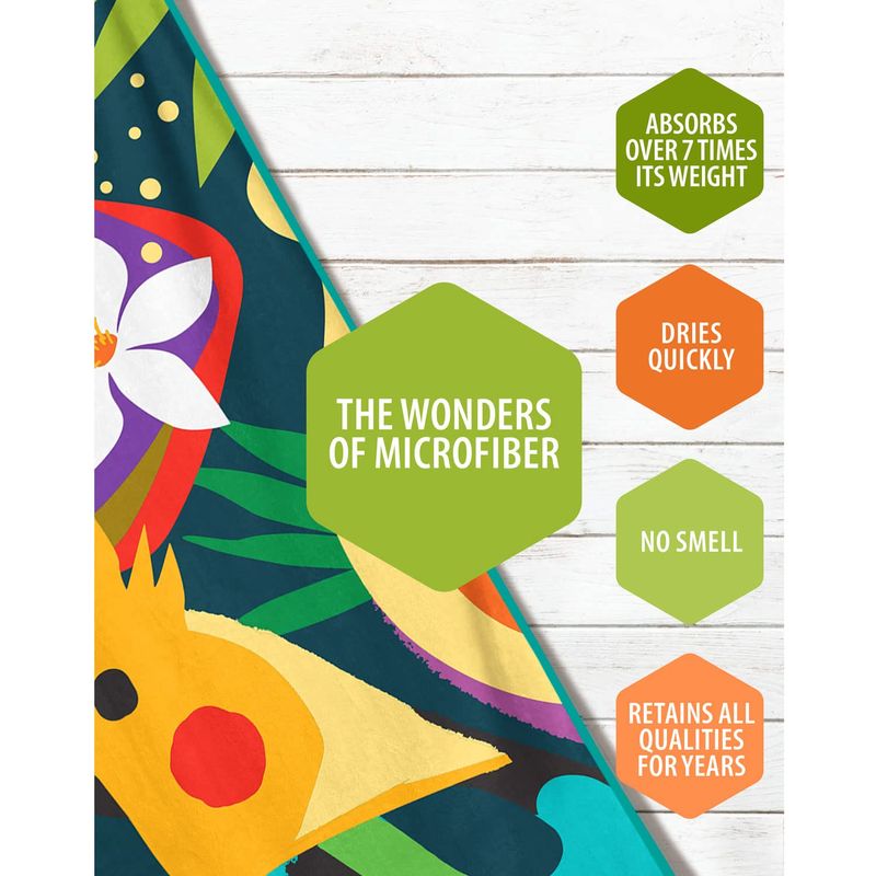 ? No es tu toalla regular: olvídate de las toallas húmedas en tu bolso. La microfibra es un material revolucionario que absorbe más de 7 veces su peso pero se seca muy rápidamente. A diferencia del algodón, sigue siendo el mismo incluso después de lavarse cientos de veces.
