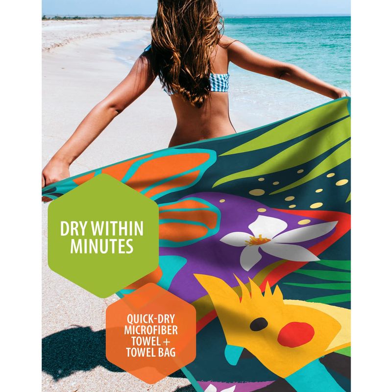 ? Sin arena y de secado rápido: gracias a la capacidad de secado rápido de la microfibra, la arena no se pega y tampoco la suciedad. No más encontrar arena durante días después de salir de la playa: con toallas de microfibra, dejas arena donde pertenece.