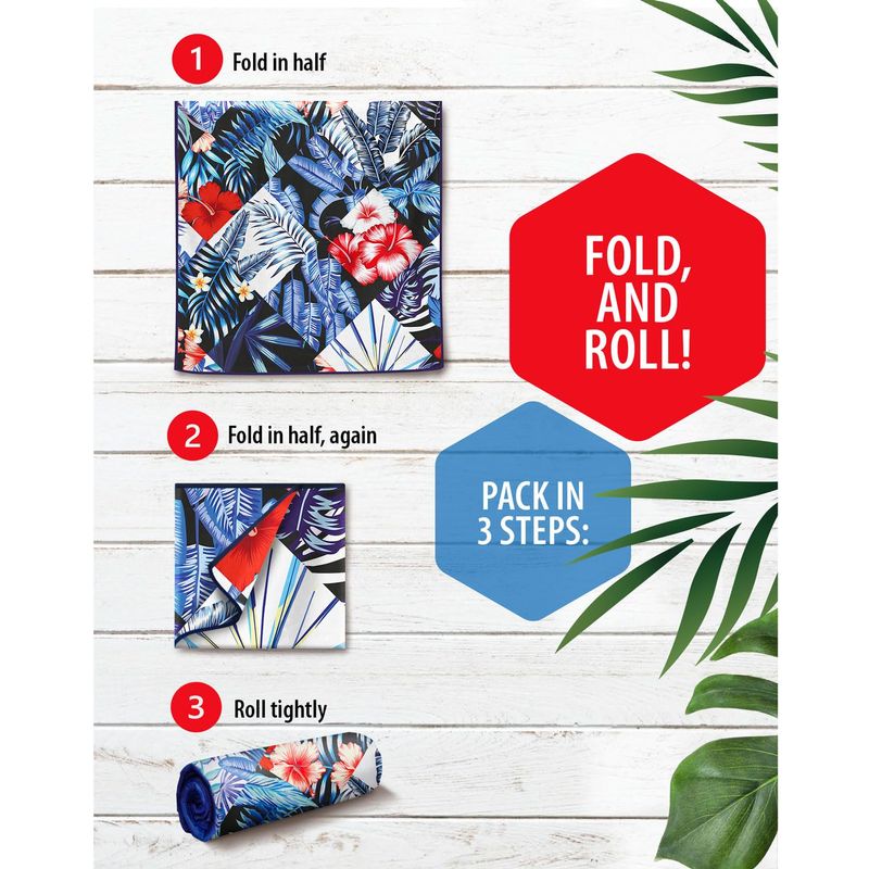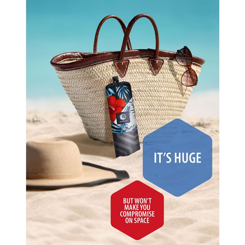 ? Grande pero fácil de plegar: nuestra toalla puede ser grande, pero con una técnica de plegado adecuada y bolsa de viaje que viene con ella, tendrás mucho espacio en tu maleta, mochila o bolsa de playa. Simplemente dóblalo por la mitad dos veces y enróllalo para adaptarse a la bolsa.