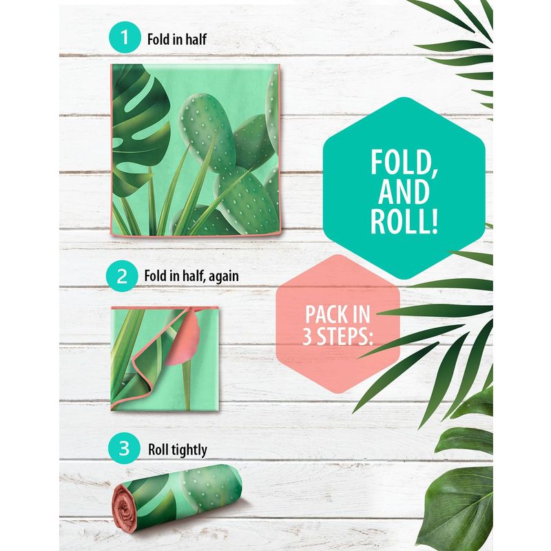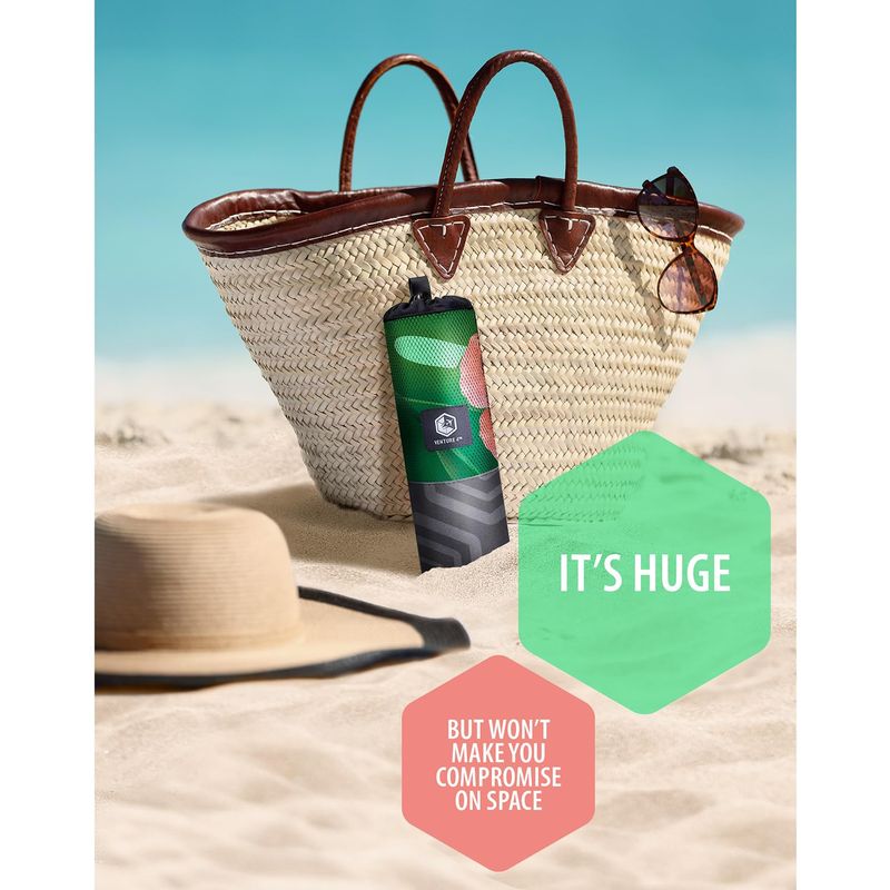 ? Grande pero fácil de plegar: nuestra toalla puede ser grande, pero con una técnica de plegado adecuada y bolsa de viaje que viene con ella, tendrás mucho espacio en tu maleta, mochila o bolsa de playa. Simplemente dóblalo por la mitad dos veces y enróllalo para adaptarse a la bolsa.