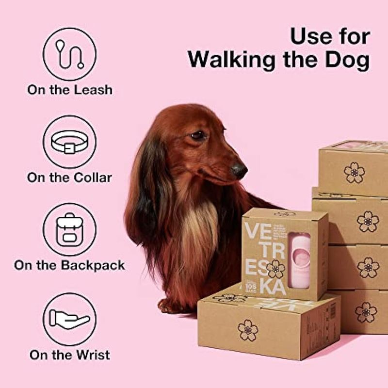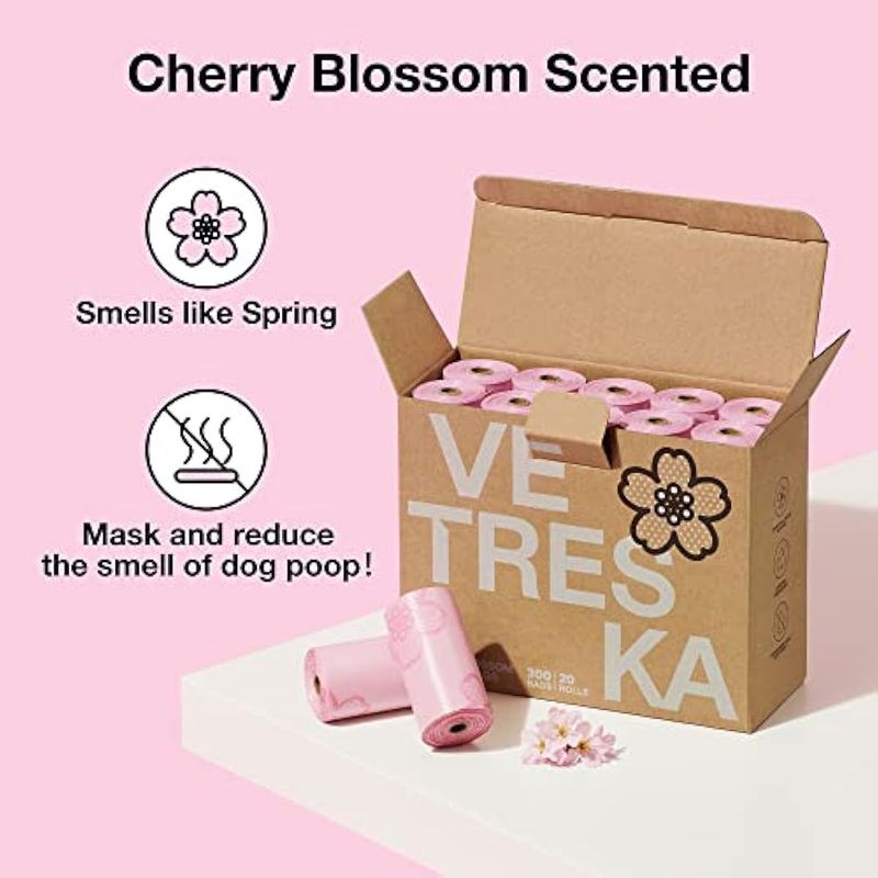 VETRESKA Dispensador de bolsas para excrementos de perro con bolsas perfumadas de flor de cerezo, a