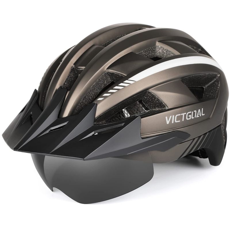 VICTGOAL Casco de bicicleta para hombres y mujeres con luz LED, gafas magnéticas desmontables, - Pardo