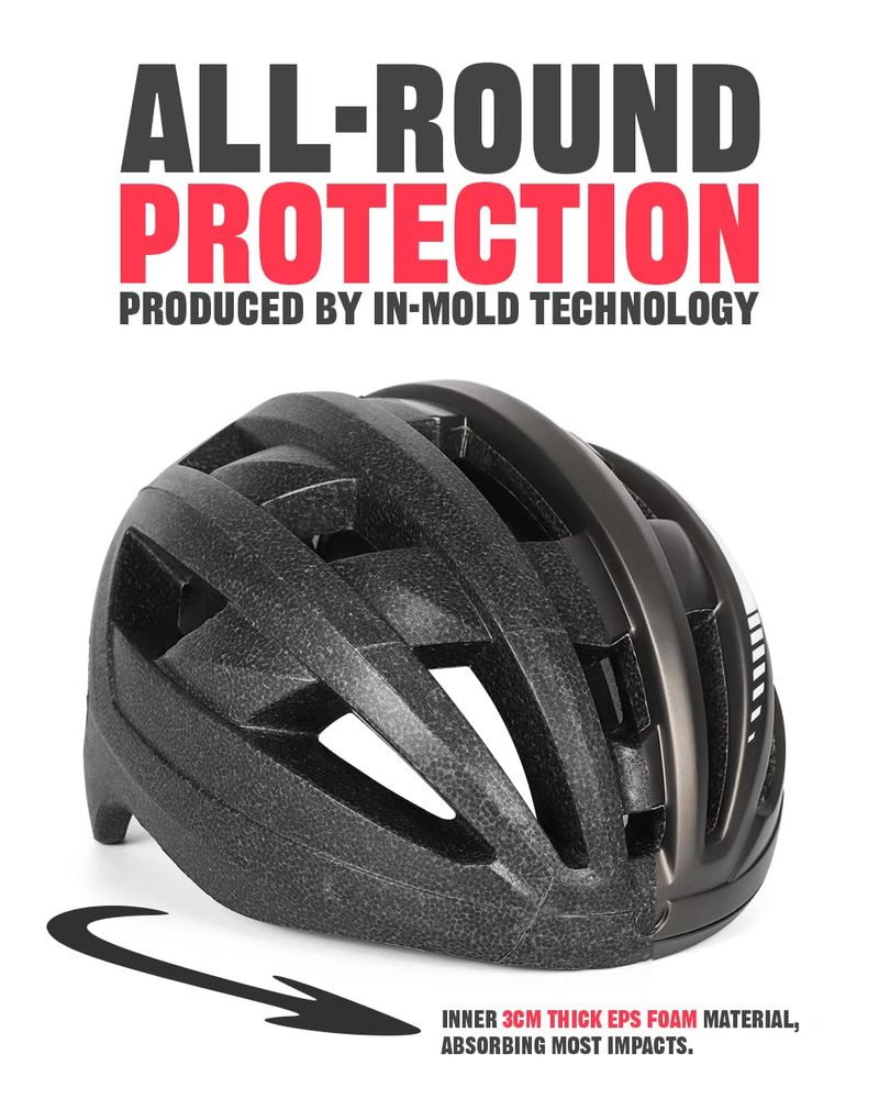Resistencia al impacto: nuestro casco de bicicleta está hecho de carcasa de policarbonato de alta densidad y espuma EPS, con carcasa dura duradera y almohadilla suave que puede absorber la presión causada por el impacto externo. Nuestro casco de bicicleta proporciona una mejor protección cuando haces ciclismo de carretera o ciclismo de montaña, ayudando en gran medida a disminuir y amortiguar el impacto.