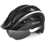 Gafas magnéticas y visera: este casco de bicicleta Victgoal con visera y gafas, es un casco ideal para bicicleta de montaña y bicicleta de carretera. Puedes poner las gafas y la visera juntas, no solo puede proteger tus ojos de la luz solar, sino que también puede proteger tu cara contra la arena y el viento. Tampoco interfiere con el uso de tus propias gafas.