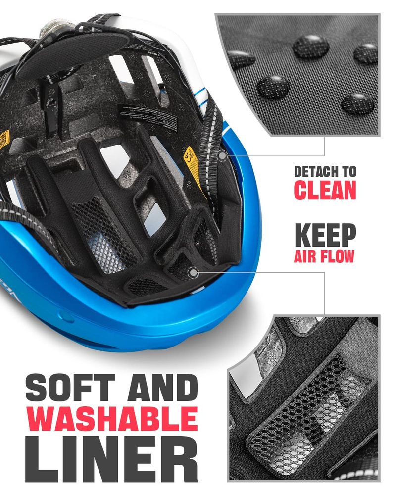 RODADOSCASCOSVICTGOAL Casco de bicicleta para hombres y mujeres con luz LED, gafas magnéticas desmontables,