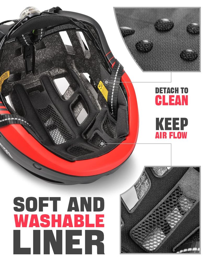 VICTGOAL Casco de bicicleta para hombres y mujeres con luz LED, gafas magnéticas desmontables,