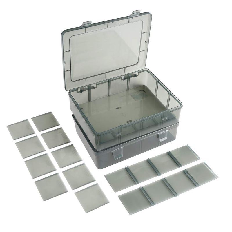 La rejilla dentro de la caja se puede mover como se muestra en la ilustración, por lo que puedes ajustar los divisores para crear tus propios compartimentos de tamaño.
