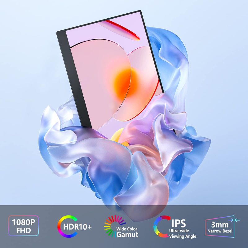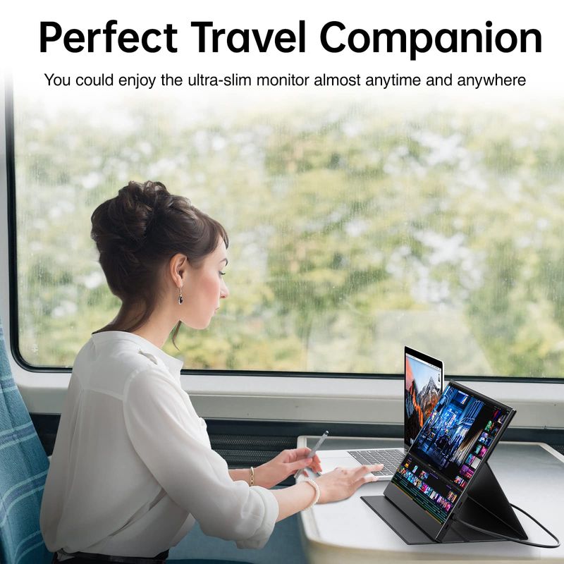 VisionOwl Monitor portátil de 15.6 pulgadas, pantalla de viaje FHD FreeSync sin marco, pantalla de