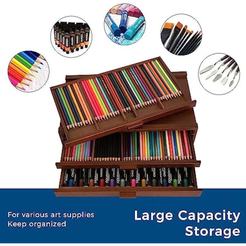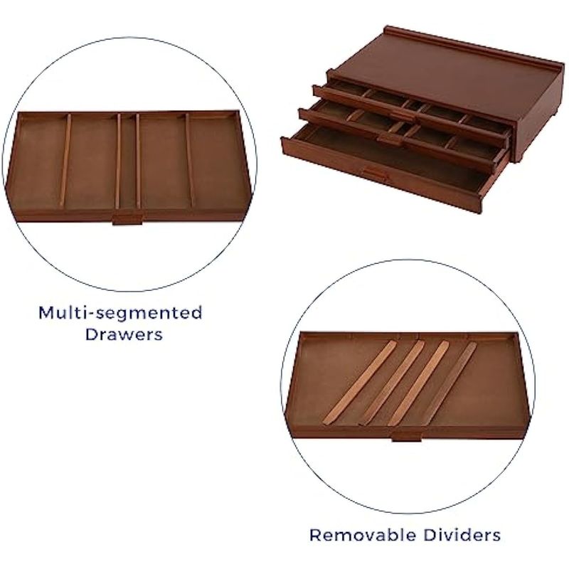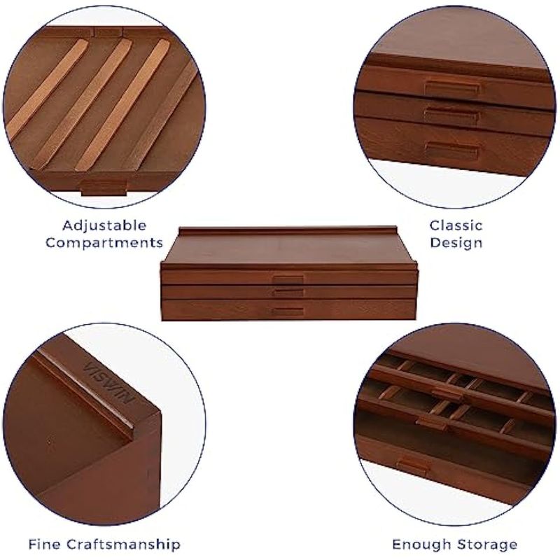 VISWIN Caja de almacenamiento de madera mejorada de 3 cajones para artistas con divisores