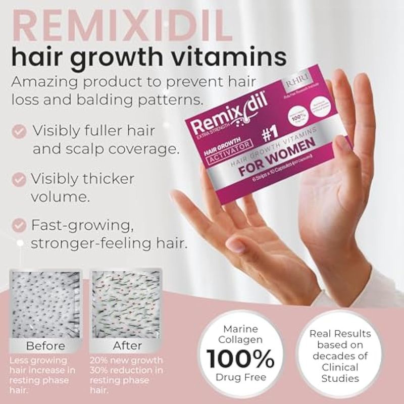Prevenir el adelgazamiento del cabello con Remixidil pastillas de crecimiento del cabello, nutrir las raíces para un cabello más grueso y saludable.