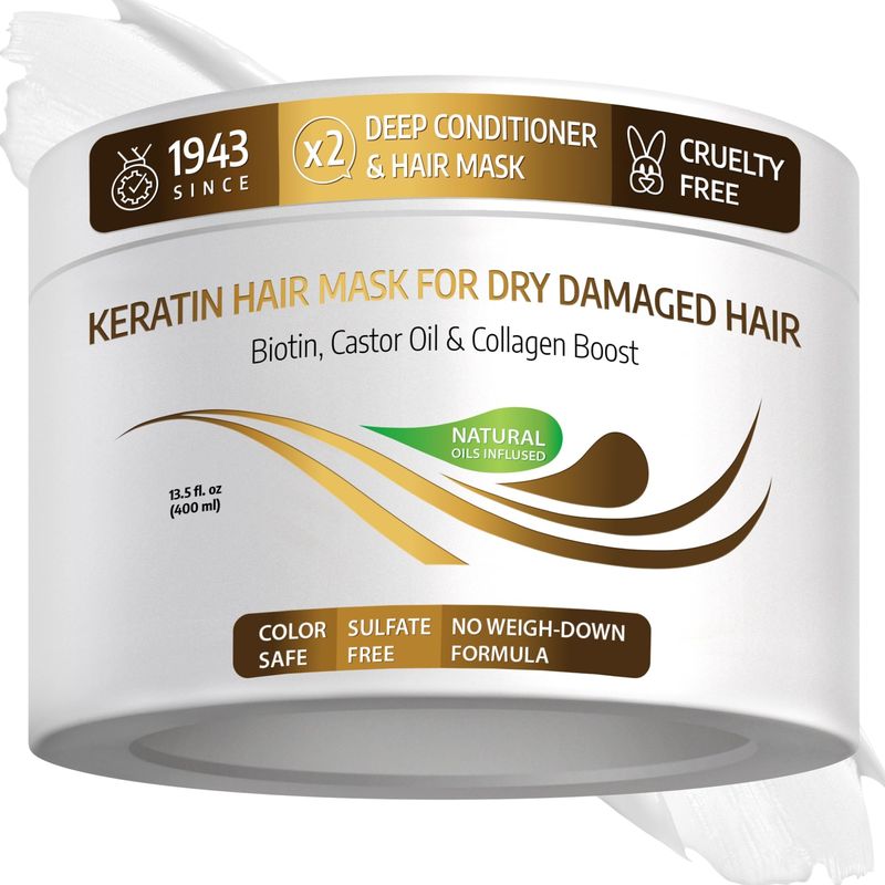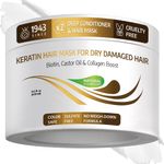 VITAMINS HAIR COSMETICS MASCARILLA CAPILAR DE QUERATINA, ACONDICIONADOR DE REPARACIóN PROFUNDA CON BIOTINA Y ACEITE DE RICINO, PARA CABELLO DAñADO, SECO, RIZADO, LISO, FINO Y FINO, TRATAMIENTO INTENSO