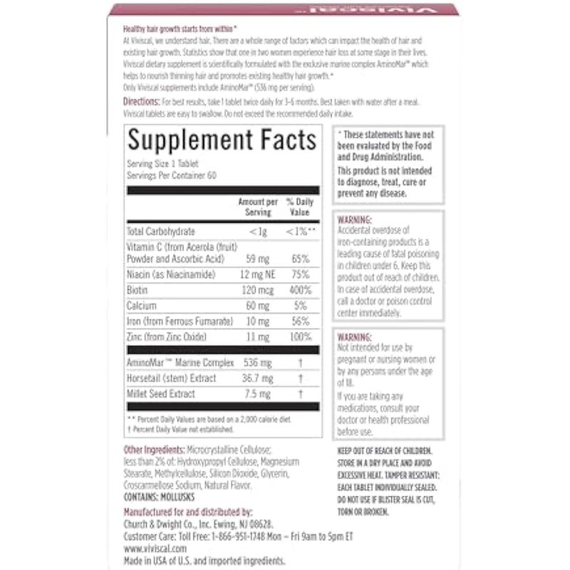 Viviscal Suplementos para el crecimiento del cabello para mujeres para crecer un cabello más grueso