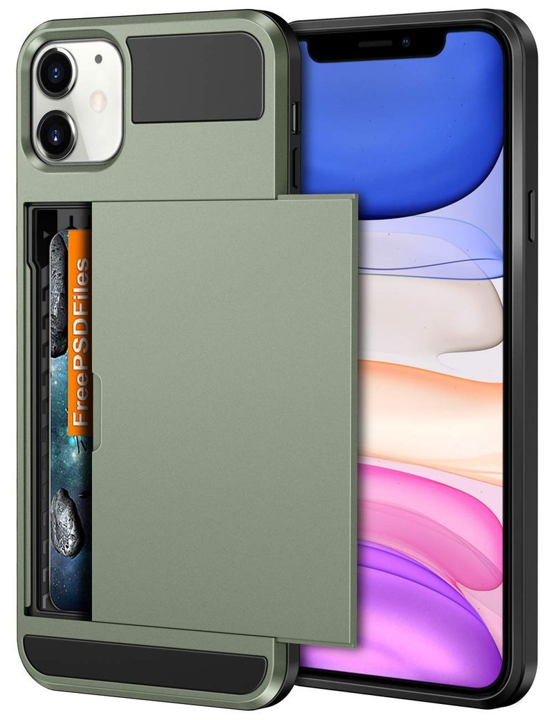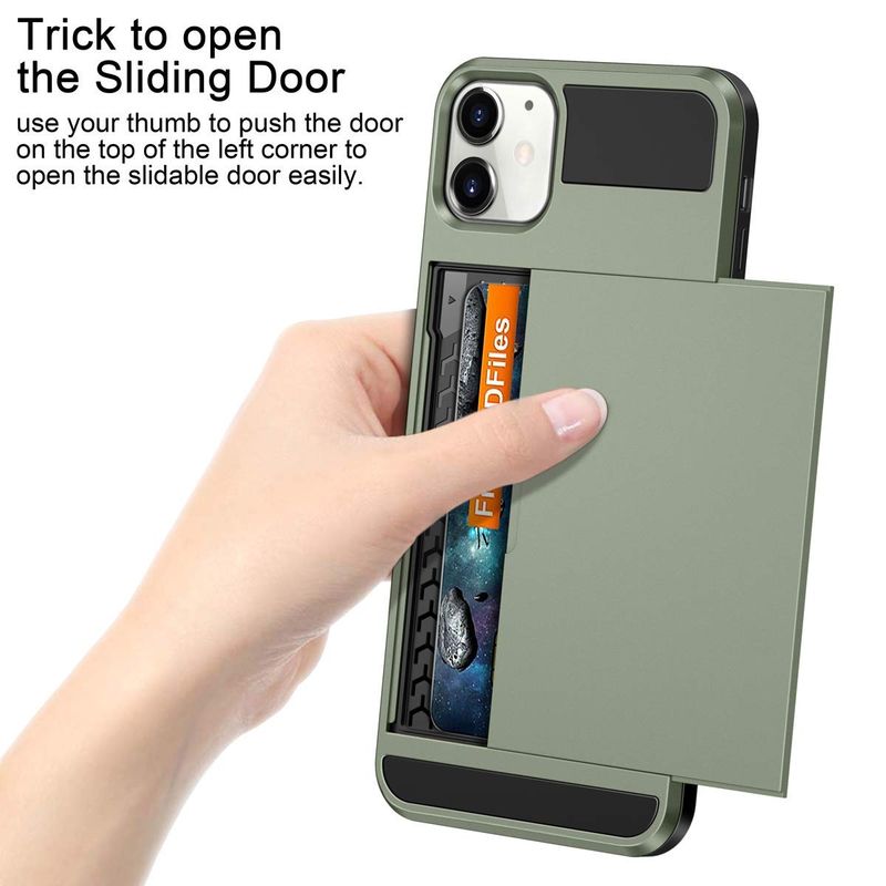 Vofolen - Funda para iPhone 11 con tarjetero, ranura para tarjeta de crédito, puerta corredera,