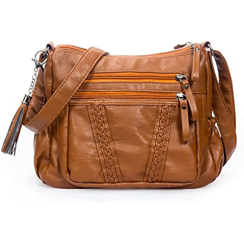 VOLGANIK ROCK Bolso cruzado para mujer con borlas, monederos de piel sintética suave y bolsillos - Pardo