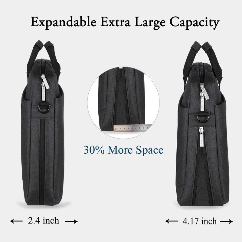 Capacidad expandible 2.4-4.17 pulgadas: una característica única de esta bolsa para portátil de 17 pulgadas es una cremallera de expansión invisible en la parte inferior, que se puede extender adicional de 1.77 pulgadas y aumentar el espacio interior general del maletín. La capacidad adicional permite almacenar más laptop o más cosas durante el trabajo y viajes de negocios cuando lo necesites.
