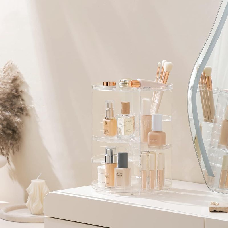 Organizador de maquillaje giratorio de 360 grados: simplemente gira el organizador de cosméticos para acceder fácilmente a tus productos de maquillaje. Este es el regalo de Navidad perfecto para tus amigos y familiares.