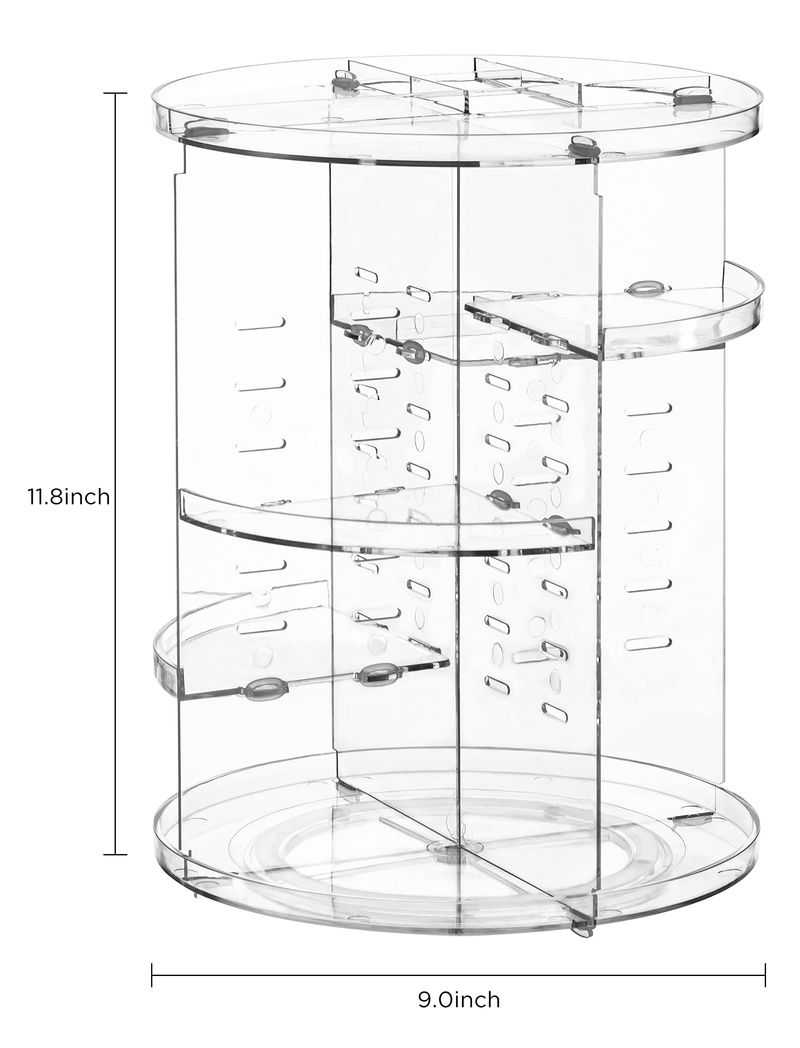 VOREY ORGANIZADOR DE MAQUILLAJE GIRATORIO 360, ORGANIZADOR DE EXHIBICIóN DE COSMéTICOS AJUSTABLE DE GRAN CAPACIDAD, ORGANIZADOR GIRATORIO DE PERFUME PARA EL CUIDADO DE LA PIEL PARA ENCIMERA DE TOCADOR, TRANSPARENTE