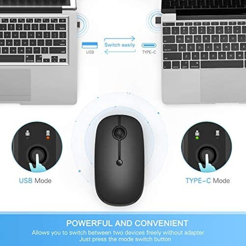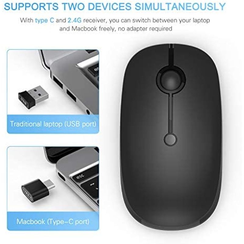 VSSOPLOR - MOUSE INALáMBRICO TIPO C, RECARGABLE CON USB C, PORTáTIL, SILENCIOSO, PARA MACBOOK, IPAD, USB Y RECEPTOR TIPO C, DE MODO DUAL, PARA PC, LAPTOP, MACBOOK, TABLETA, COLOR NEGRO