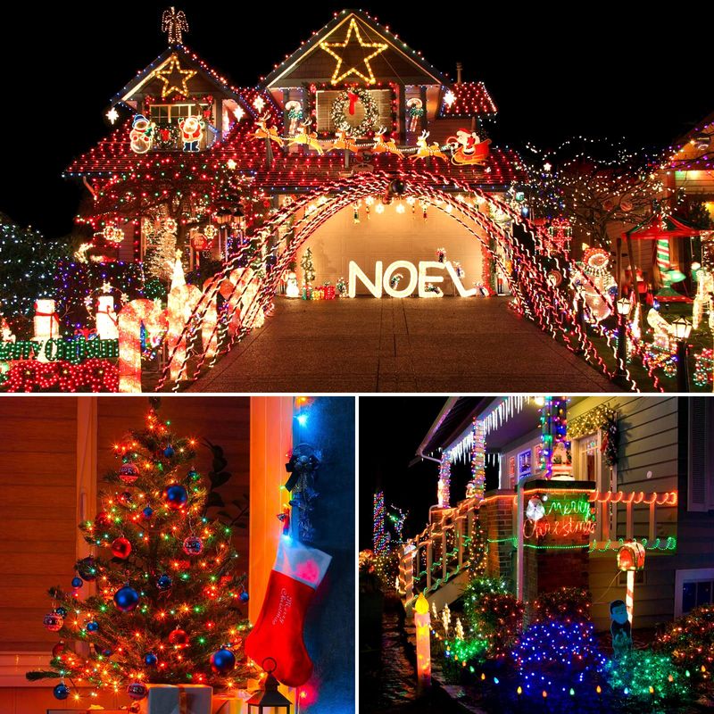 Hasta 4 juegos conectables: Con un enchufe de extremo a extremo, la cadena de luces navideñas puede soportar hasta 4 juegos, haciendo que la longitud máxima sea de 420 pies. Suficiente para cubrir un área más grande.