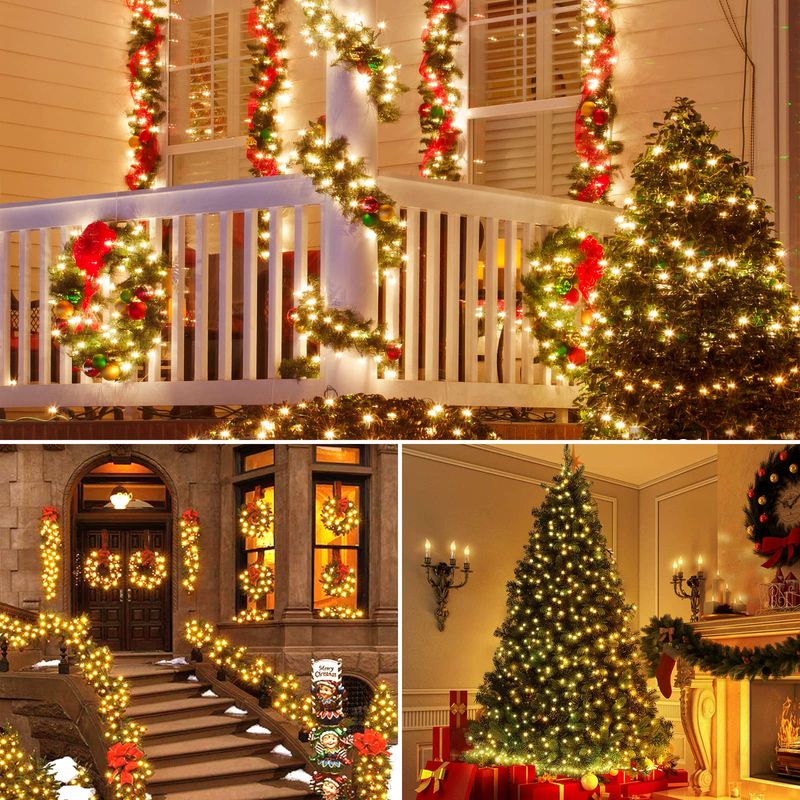 Hasta 4 juegos conectables: Con un enchufe de extremo a extremo, la cadena de luces navideñas puede soportar hasta 4 juegos, haciendo que la longitud máxima sea de 420 pies. Suficiente para cubrir un área más grande.