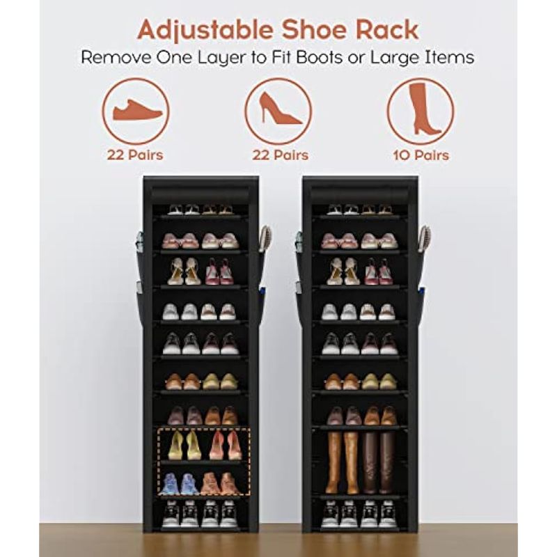 HOGARAMOBLAMIENTOMUEBLES DE DORMITORIOVTRIN Zapatero estrecho con cubiertas, zapatero alto de 10 niveles para armario y entrada,