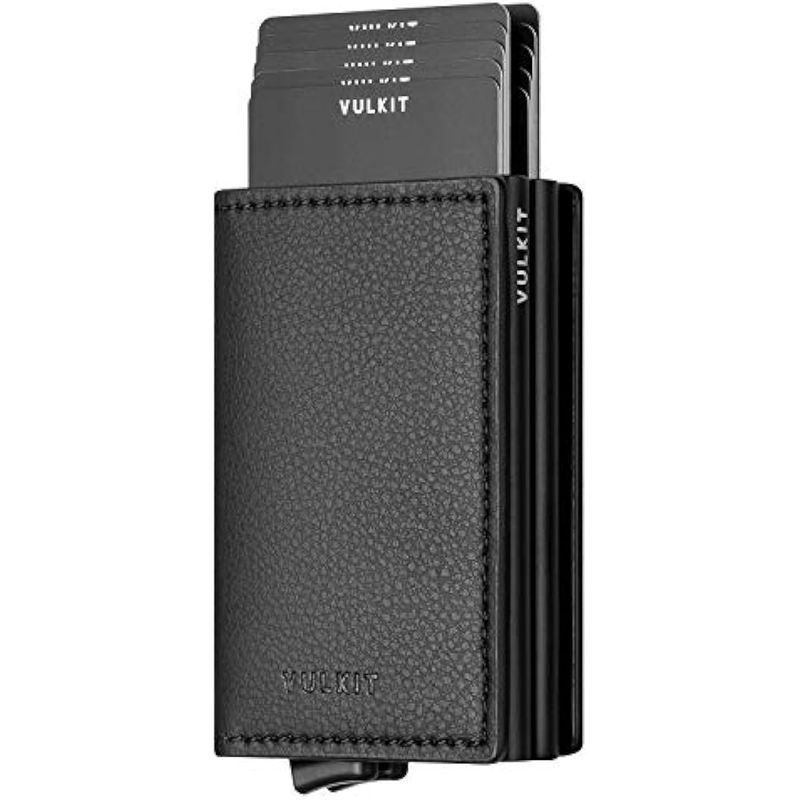 VULKIT CARTERA DESPLEGABLE DE CUERO PARA TARJETAS DE CRéDITO DELGADA, CON BLOQUEO RFID, FUNDA DE DOBLE TARJETA DE METAL PARA HOMBRES Y MUJERES, GRIS HIERRO