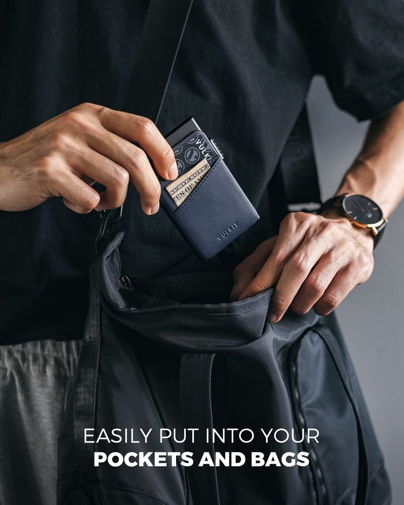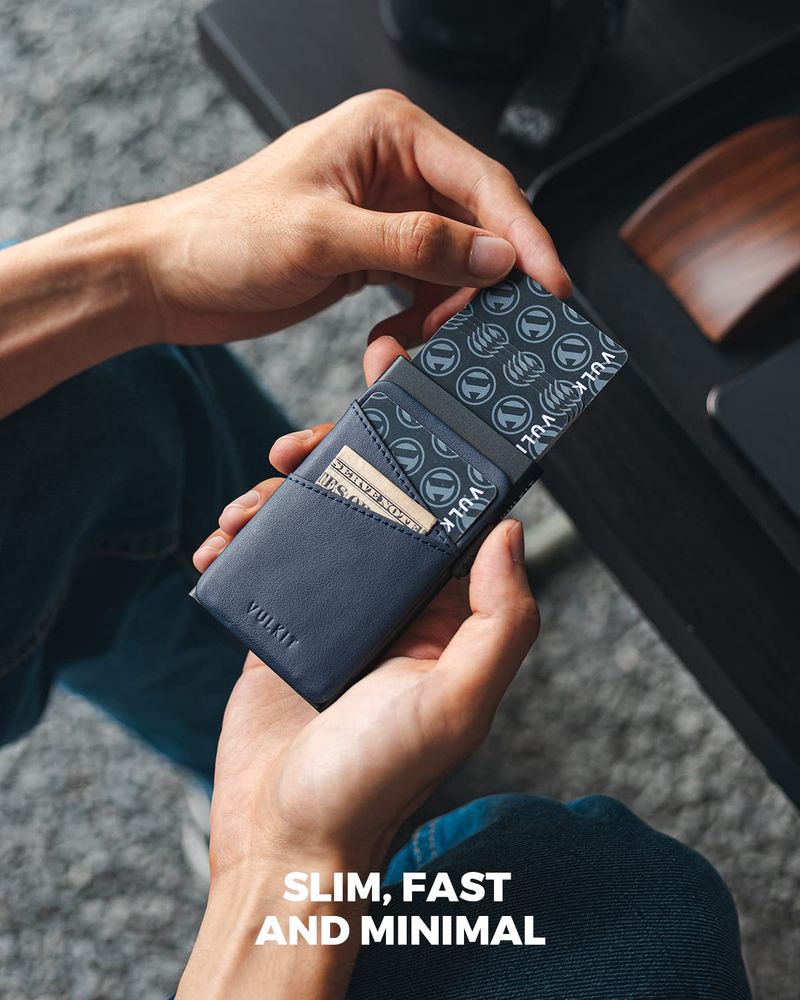 HOGARINDUMENTARIA Y ACCESORIOSVULKIT Cartera desplegable para tarjetas de crédito con ranuras de cuero adicionales con bloqueo