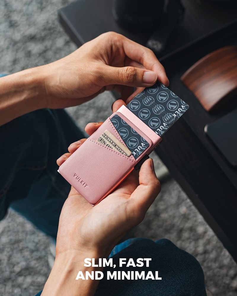 HOGARINDUMENTARIA Y ACCESORIOSVULKIT Cartera desplegable para tarjetas de crédito con ranuras de cuero adicionales con bloqueo