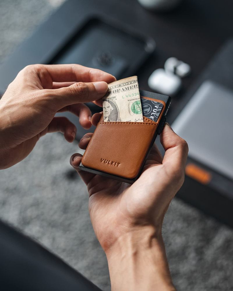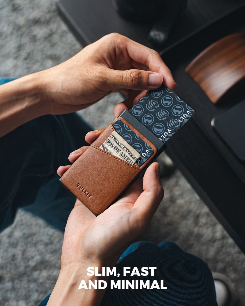 HOGARINDUMENTARIA Y ACCESORIOSVULKIT Cartera desplegable para tarjetas de crédito con ranuras de cuero adicionales con bloqueo