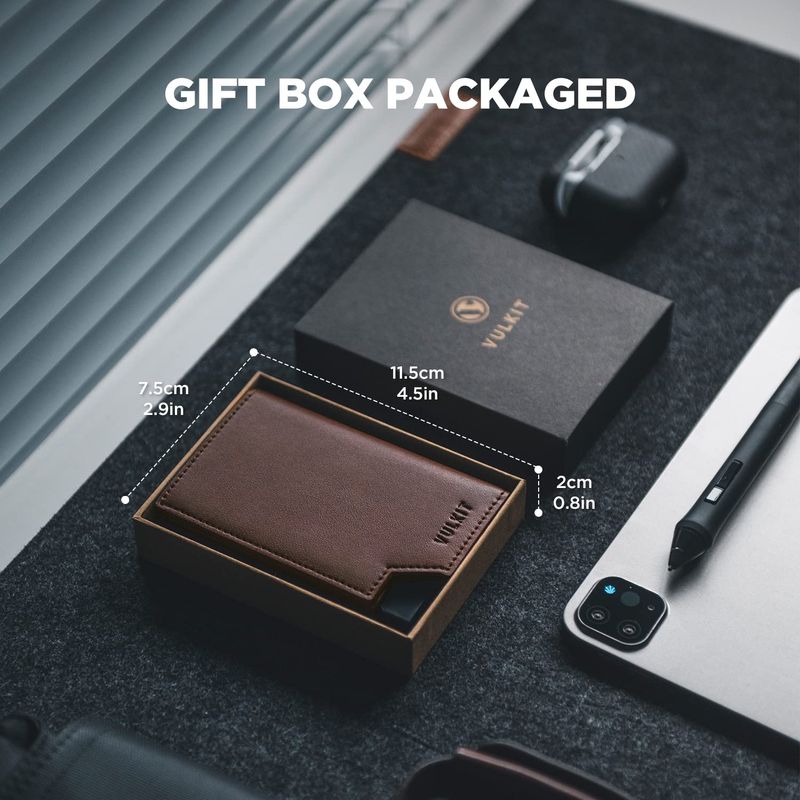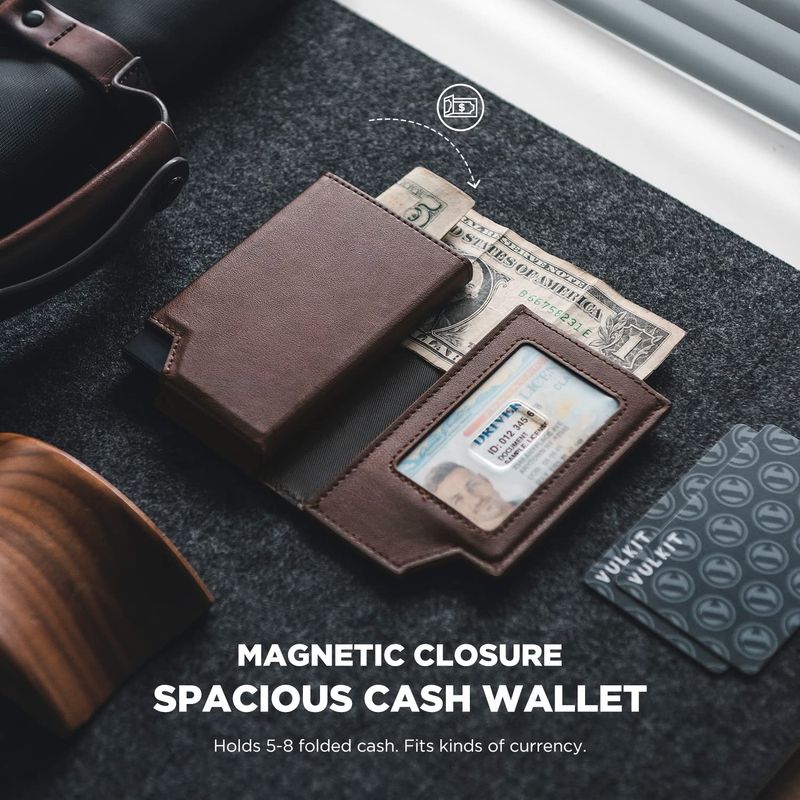 VULKIT Cartera minimalista para hombre, tarjetero desplegable con bloqueo RFID, cierre magnético,
