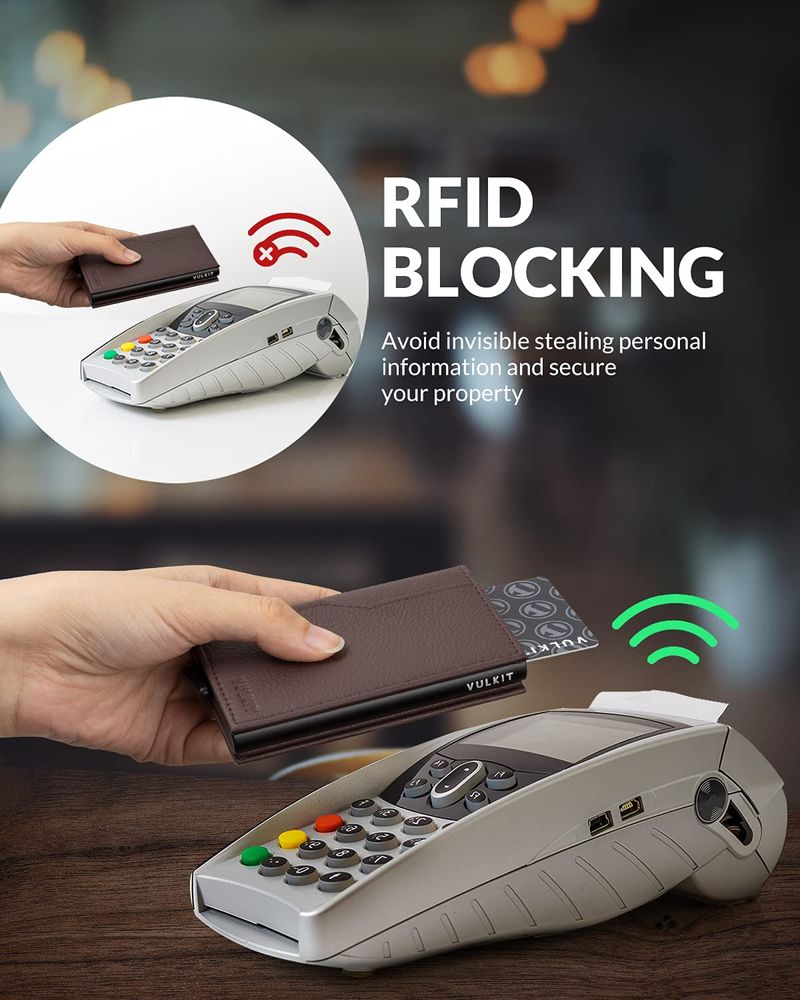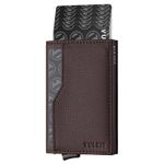 VULKIT TARJETERO CON VENTANA DE IDENTIFICACIóN, TARJETAS EMERGENTES, DELGADA, DE CUERO, CON PROTECCIóN RFID, HASTA 12 TARJETAS, FUNDA PARA TARJETAS, MARRóN, MINIMALISTA