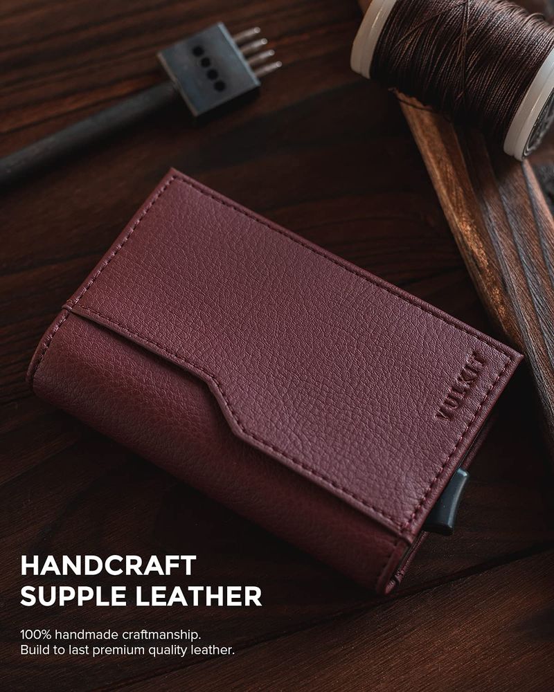 EQUIPAJEMOCHILASVULKIT Tarjetero con ventana de identificación, tarjetas emergentes, delgada, de cuero, con
