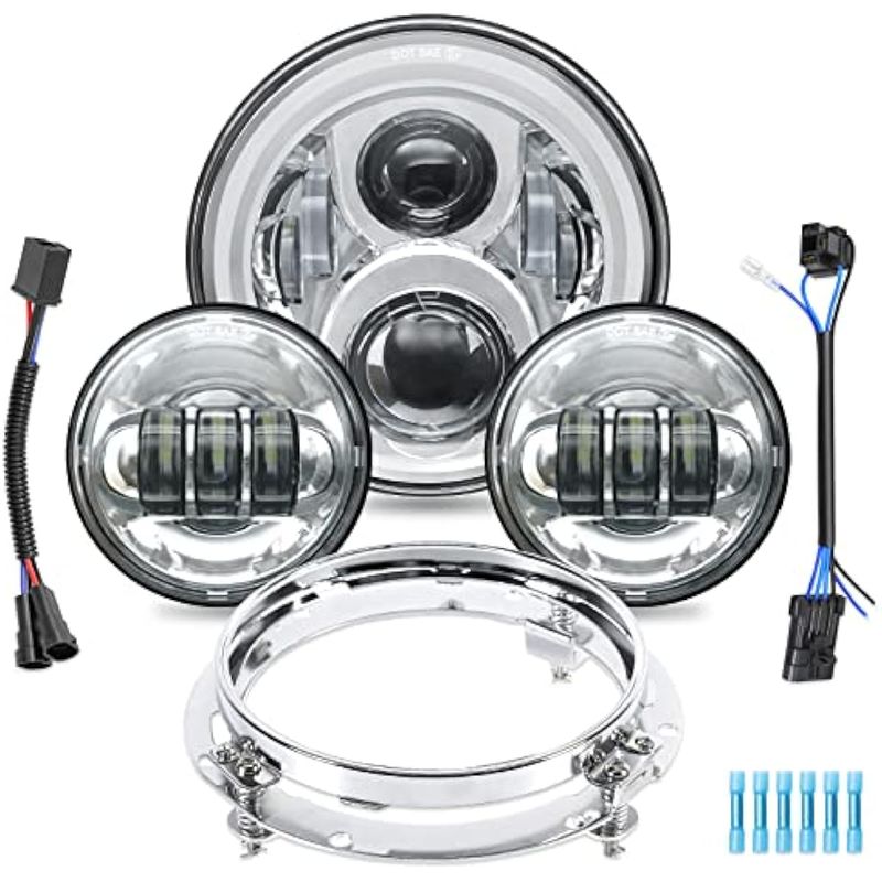 RODADOSMOTOSVZ4X4 Kit de faros delanteros LED de 7 pulgadas con lámpara de paso de 4 1/2 y soporte de anillo