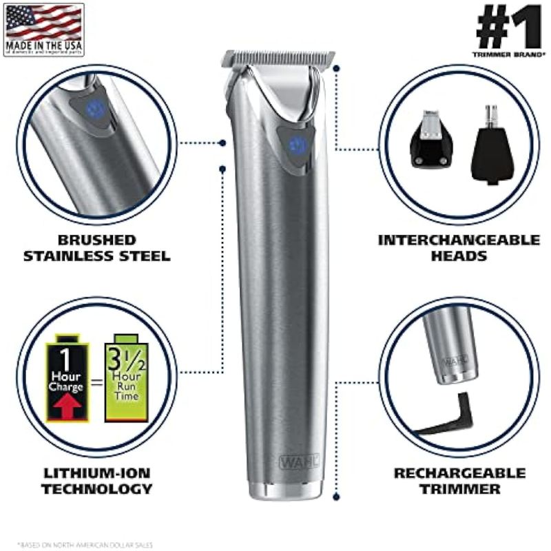 Wahl, afeitadora de acero inoxidable, ión litio, #9818.