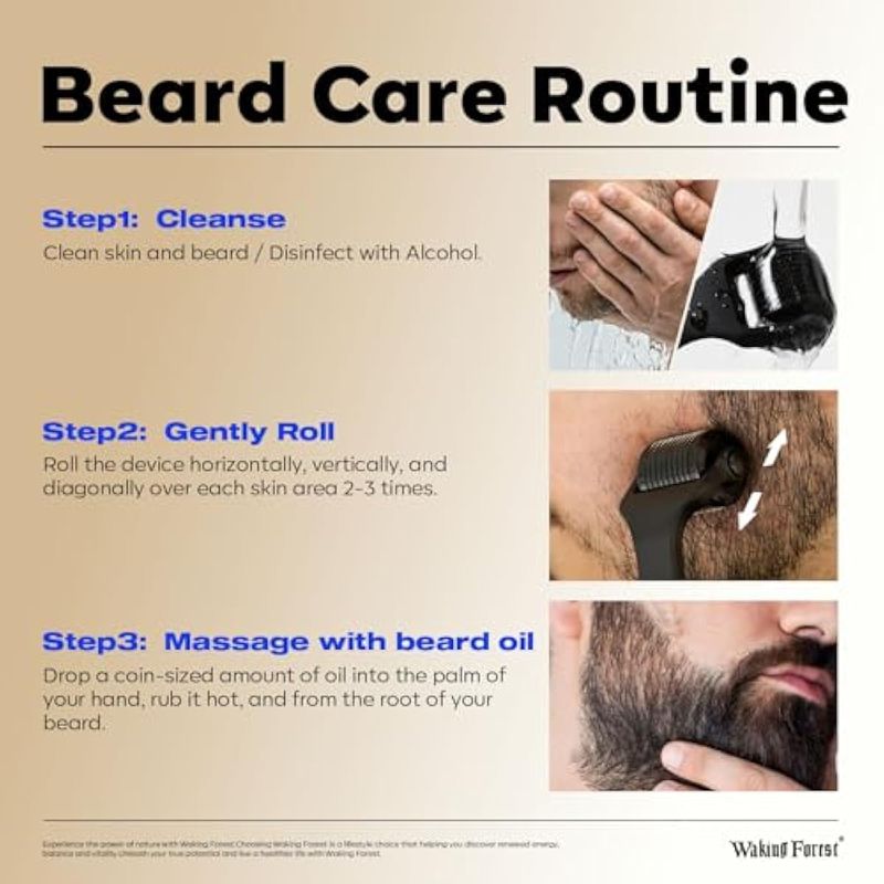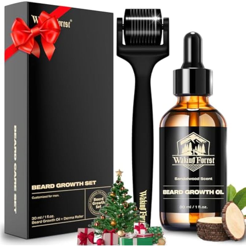 Waking Forest Derma Roller 0.010 in y aceite para barba (1 onza), kit de crecimiento de barba de