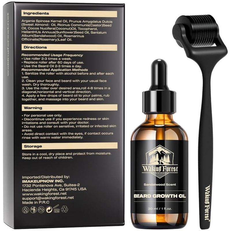 BELLEZA Y SALUDCUIDADO PERSONALAFEITADORAS Y CORTACABELLOSWaking Forest Derma Roller 0.010 in y aceite para barba (1 onza), kit de crecimiento de barba de